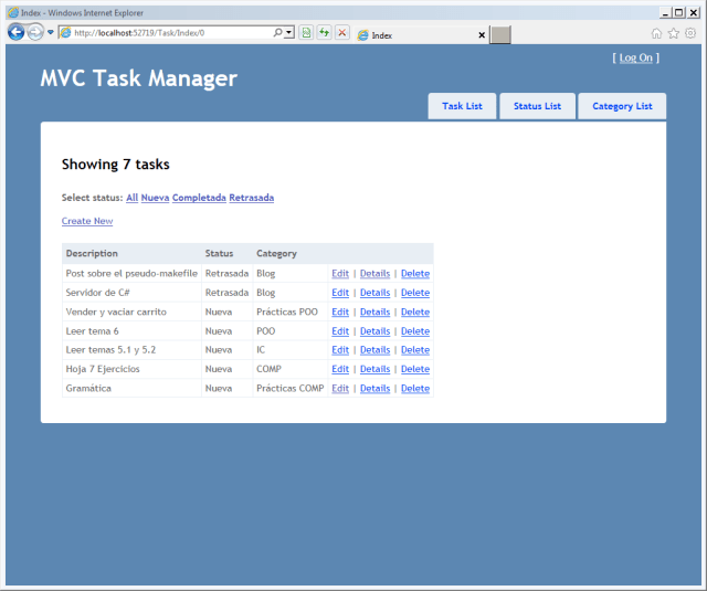 Hoy he empezado mi primera contribución a CodePlex, un gestor de tareas bastante simplón, y (por el momento) monousuario, aunque personalmente me resuelve mis problemas ;).