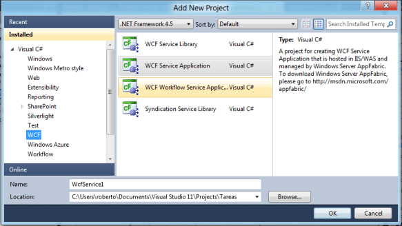 Un servicio web es un conjunto de funciones que expone un servidor, y a las que puede acceder un cliente. Para crear un servicio WCF basta con agregar un nuevo proyecto a la solución, de tipo WCF Service Application: