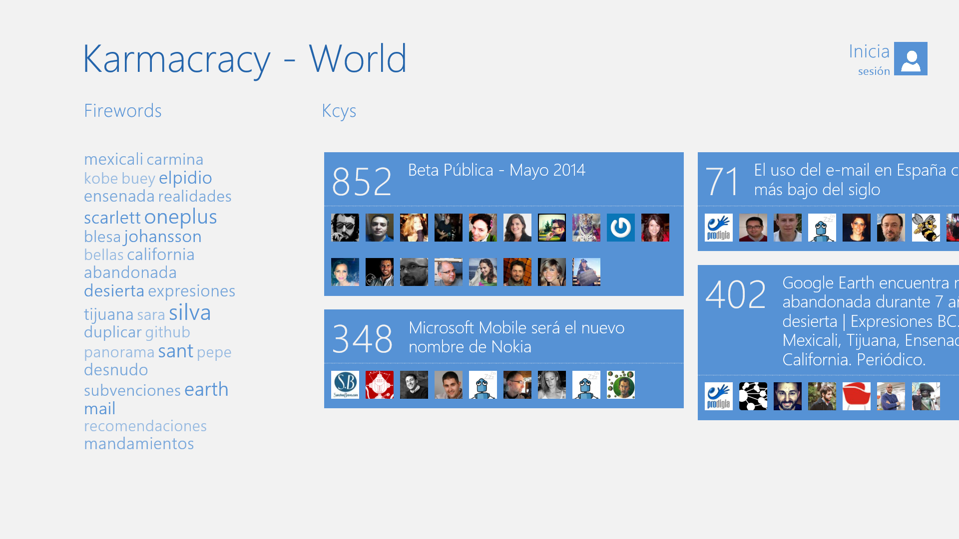 Last April, after several months of development, and continuing the work with HTML, CSS and Javascript I was doing with RealPoll, I published Karmacracy, a Windows 8 app for the popular social network that looks like this: