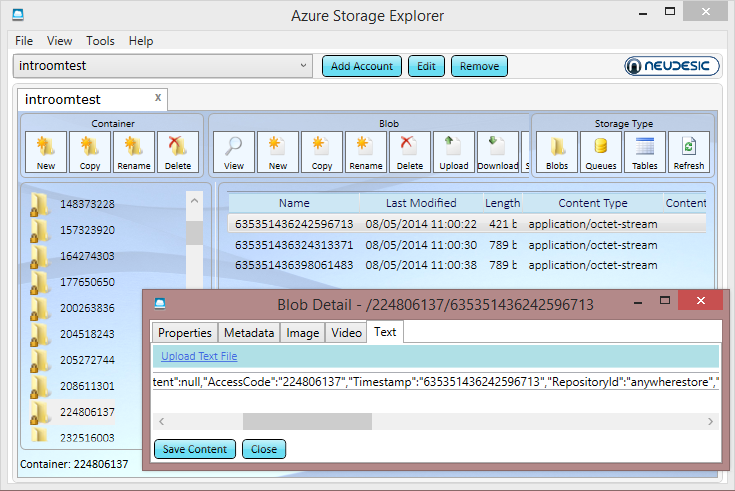 Si accedemos desde el Azure Storage Explorer podemos ver qué se está almacenando: