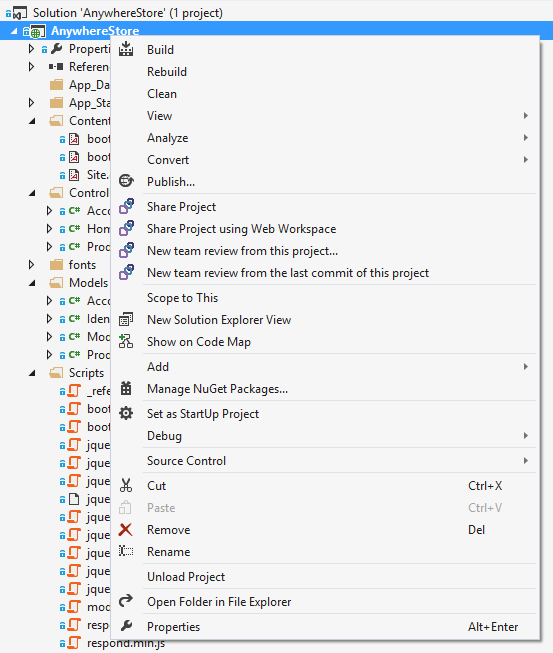 Si se cumplen esos dos requisitos, las opciones se mostrarán al hacer click derecho sobre un proyecto: