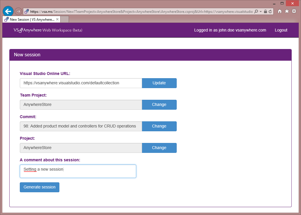 Para poder empezar a usar las Interactive Rooms, solamente necesitas VS Anywhere 3.0.0.157 y una cuenta en Visual Studio Online. Puedes comenzar desde el propio Visual Studio siempre que: