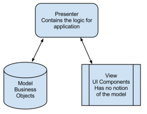 En el caso de Android, se propone el uso de Interfaces entre Presenter y la Vista, de manera que trabajamos, con clases abstractas, consiguiendo cierta independencia con las implementaciones.