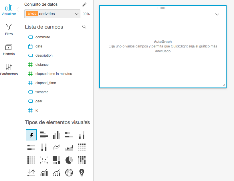 Si tenemos seleccionada la opción de AutoGraph marcada por el rayo, QuickSight generará un tipo de gráfico adecuado a cada tipo de datos.